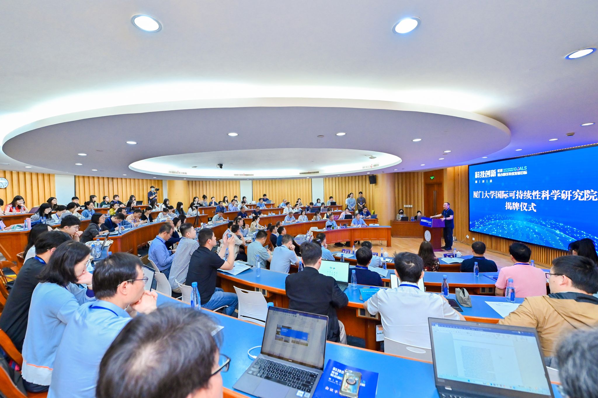 2023年4月20日,厦门大学国际可持续性科学研究院(International Institute for Sustainability Science, 以下简称研究院)在试运行一年后正式揭牌,揭牌仪式在厦门大学思明校区科学艺术中心1号会议室举行。这是国内第一家以可持续性科学为研究主题的研究院,面向国际可持续性科学前沿,面向国家可持续发展战略需求,为实现联合国可持续发展目标(SDGs)提供强有力的科学支持。当天,由厦门大学国际可持续性科学研究院承办的第一场全国性研讨会——“科技创新促进联合国可持续发展目标(SDGs)研讨会”同步召开。