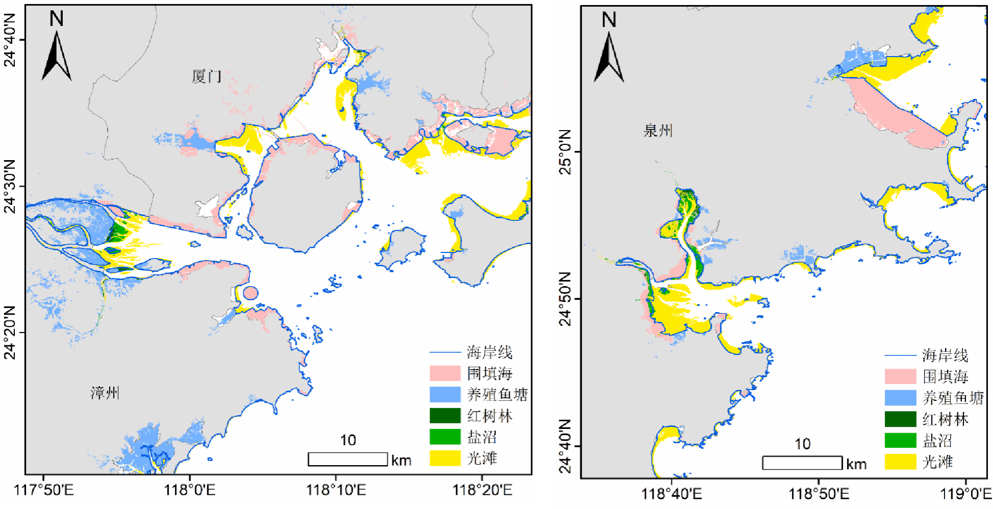 数据集摘要:本数据集汇集了1990年至2020年期间,中国福建省海岸带关键人类活动(填海造地、养殖鱼塘)与滨海湿地(红树林、盐沼、光滩)空间分布及时空动态变化,空间分辨率为30m。